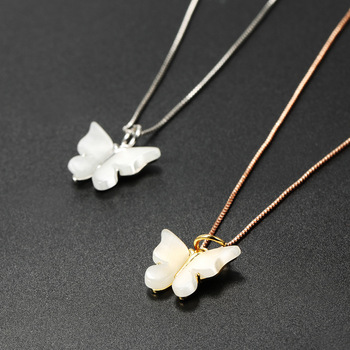 Foxi女性用ジュエリーホワイトゴールドメッキブリングネックレスインフィニティピンクキュービックジルコン蝶ネックレス2025