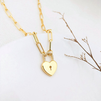 ユニークなデザイナーファッションジュエリー18kゴールドメッキラブハートチェーンペンダントネックレス